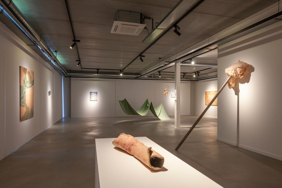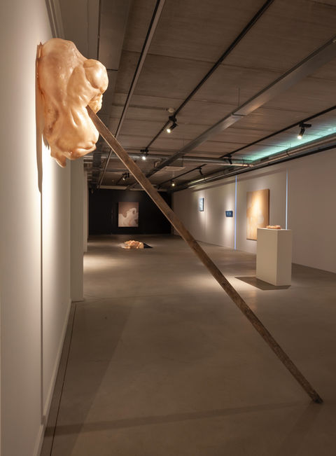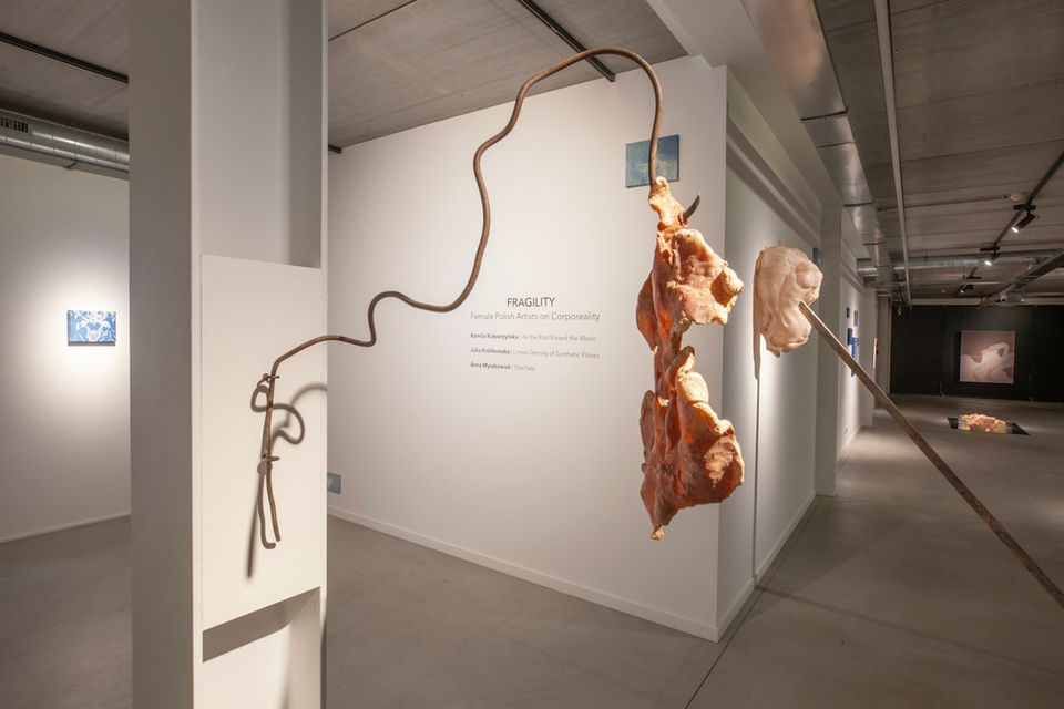 Anna Myszkowiak focuses on the issues of sculpture and space. Her choice of artistic materials often mirror materials found in natural environment which she appropriates to create objects resembling living organisms captured in the process of transformation.